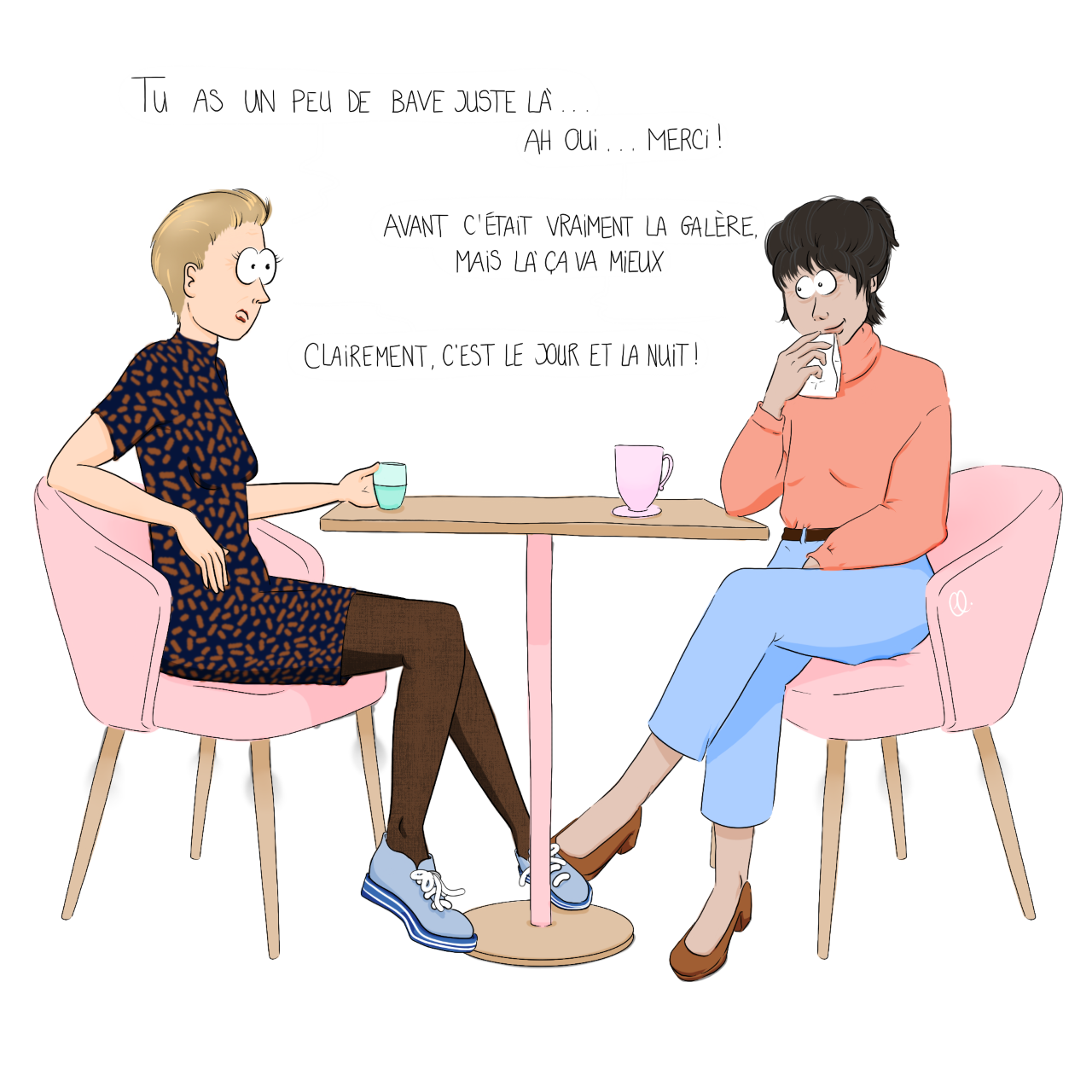 Grâce aux séances de logopédie, Fatima a commencé à remarquer des progrès au niveau du contrôle de sa salive grâce au renforcement des muscles faciaux. Elle a également une articulation plus précise ce qui lui permet de s’exprimer de manière plus claire et compréhensible pour son entourage, malgré les séquelles de son AVC. Fatima doit toujours être attentive, mais ne craint plus les sorties entre amis.